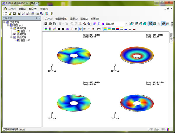 TSTMP試驗模態分析軟件,用VC++開 發的一套完整的試驗模態分析軟件,可用于WINDOWS 2000/XP/Vista/7環境。TSTMP軟件可以通過數據分析,計算出振型數據,顯示被測結構的振型三維動畫,也可以顯示模型的時域或頻域的運行動撓度ODS (Operating Deflection Shape)。軟件通過數據分析,可以確定被測結構的模態參數(固有頻率、 振型、 阻尼比),用戶可進一步用于結構動力響應等分析。 公司不斷推出軟件的新版本,及時為用戶免費升級,確保用戶可用最先進的方法、更好的進行試驗模態分析工作。