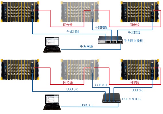 | 圖3 多臺儀器通過千兆網/USB3.0級聯工作 |