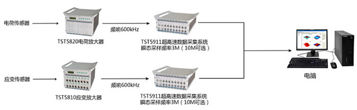 | 超高速3M數據采集處理系統包括:傳感器、TST5810應變放大器或TST5820電荷放大器 、TST5911超高速數據采集系統 、計算機等。輸入的信號可以是各種形式,它可以是語音信號、調制后的電話信號、編碼的數字信號、壓縮的圖像信號,也可以是各種傳感器輸出的信號。如果輸入的信號幅度較小或者過大,一般都需要經過放大器單元將輸入信號幅度放大或者縮小后,送到數據采集器。之后數據數據采集器將采集的數據顯示在計算機上。 |